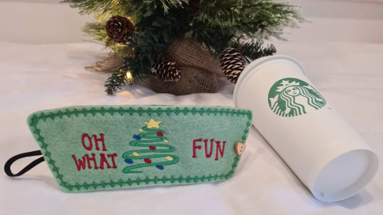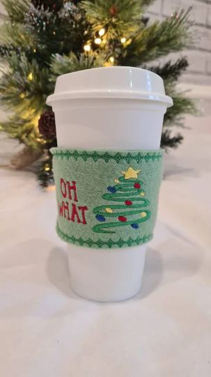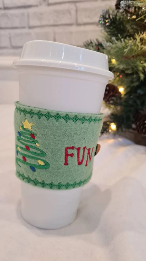 Reusable Coffee Mug Wrap – Christmas Tree Embroidery Design